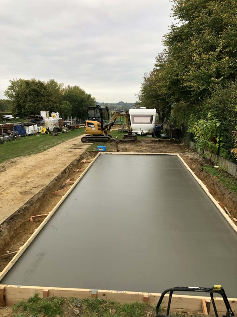 - De Basis: Wij starten met de grondwerken en het storten van een solide funderingsplaat.